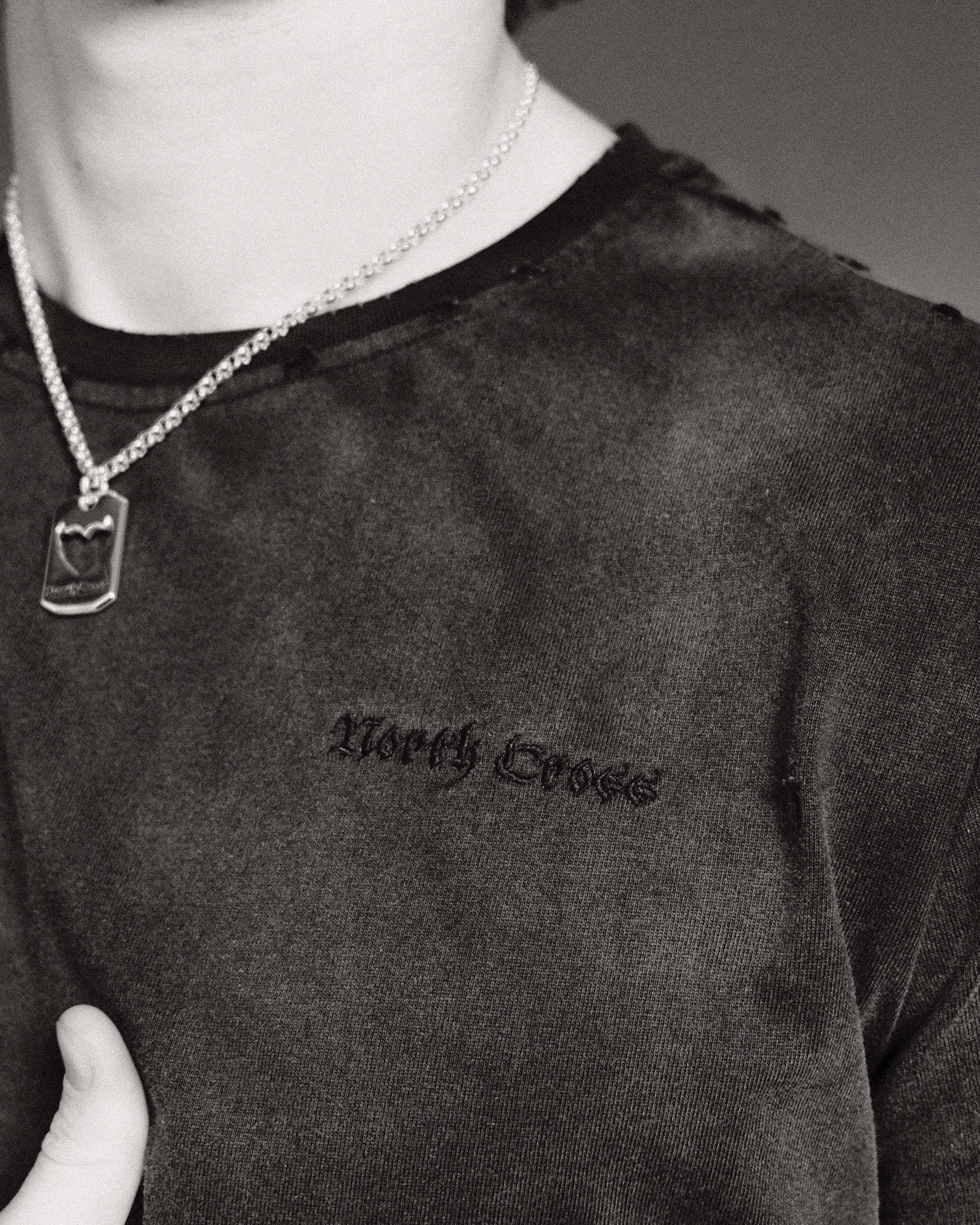 DISTRESSED CROPPED TEE - VINTAGE BLACK