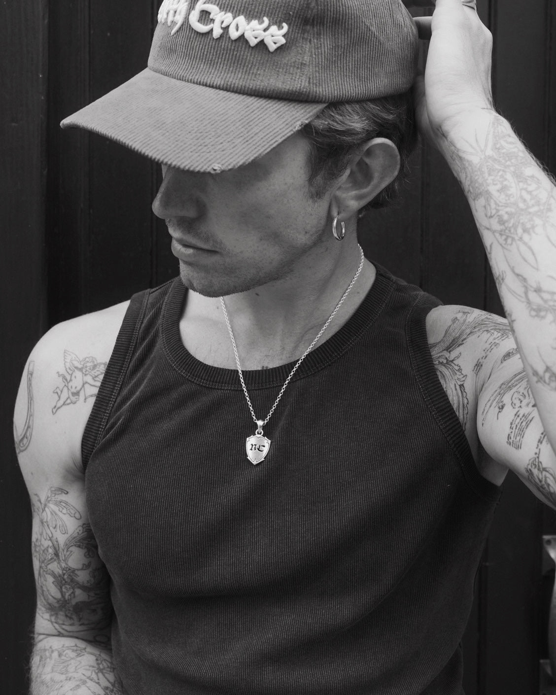 The NC Shield in solid 925 sterling silver. This is the perfect everyday chunky pendant that we recommend pairing with our Thin Belcher Chain.