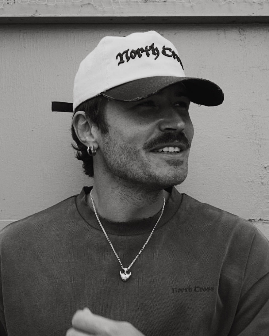 The NC Horned Heart Pendant in solid 925 sterling silver. This is the perfect everyday chunky pendant that we recommend pairing with our Thin Belcher Necklace.