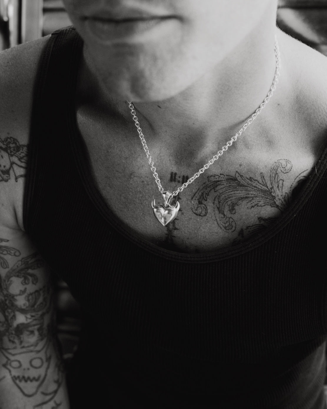The NC Horned Heart Pendant in solid 925 sterling silver. This is the perfect everyday chunky pendant that we recommend pairing with our Thick Trace Necklace.