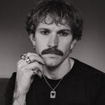 Model is wearing The Dog Tag Pendant on a 18" necklace.
